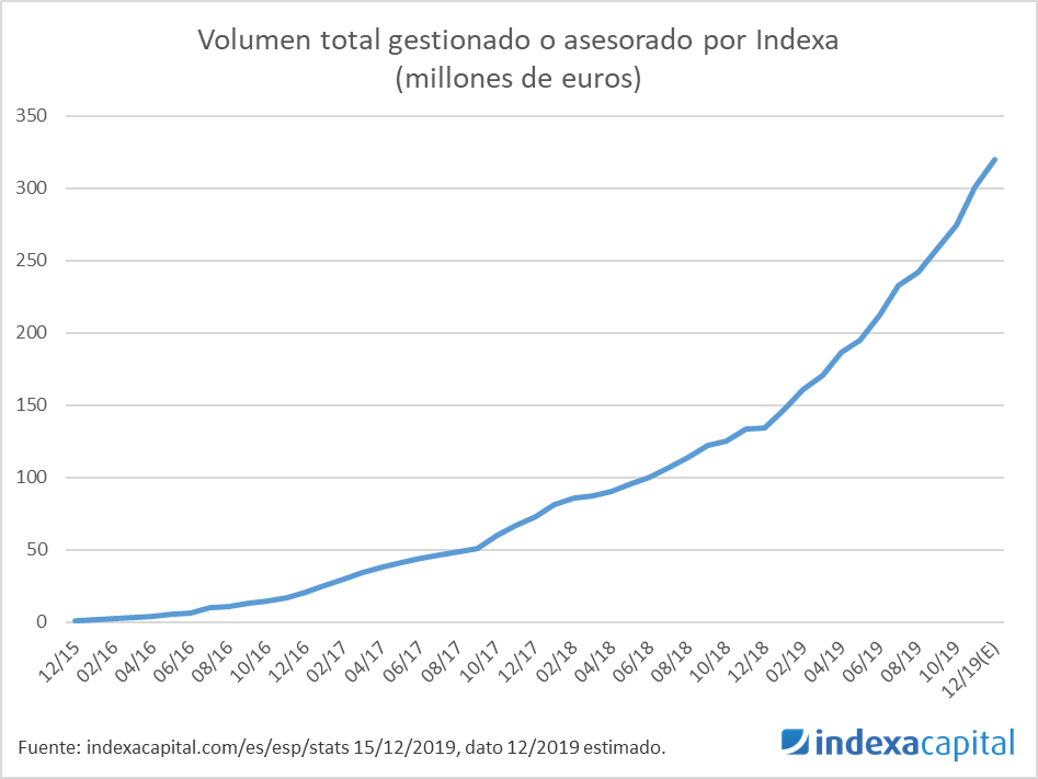 Tiempo de lectura: 6 minutos. Cumplimos ya 4 años desde que lanzamos Indexa Capital, el primer gestor automatizado en España, el 15 de diciembre 2015. Gracias al apoyo de nuestros clientes, nos seguimos consolidando como el gestor automatizado líder en España, con más de 312 millones de euros gestionados o asesorados en este momento, muy…