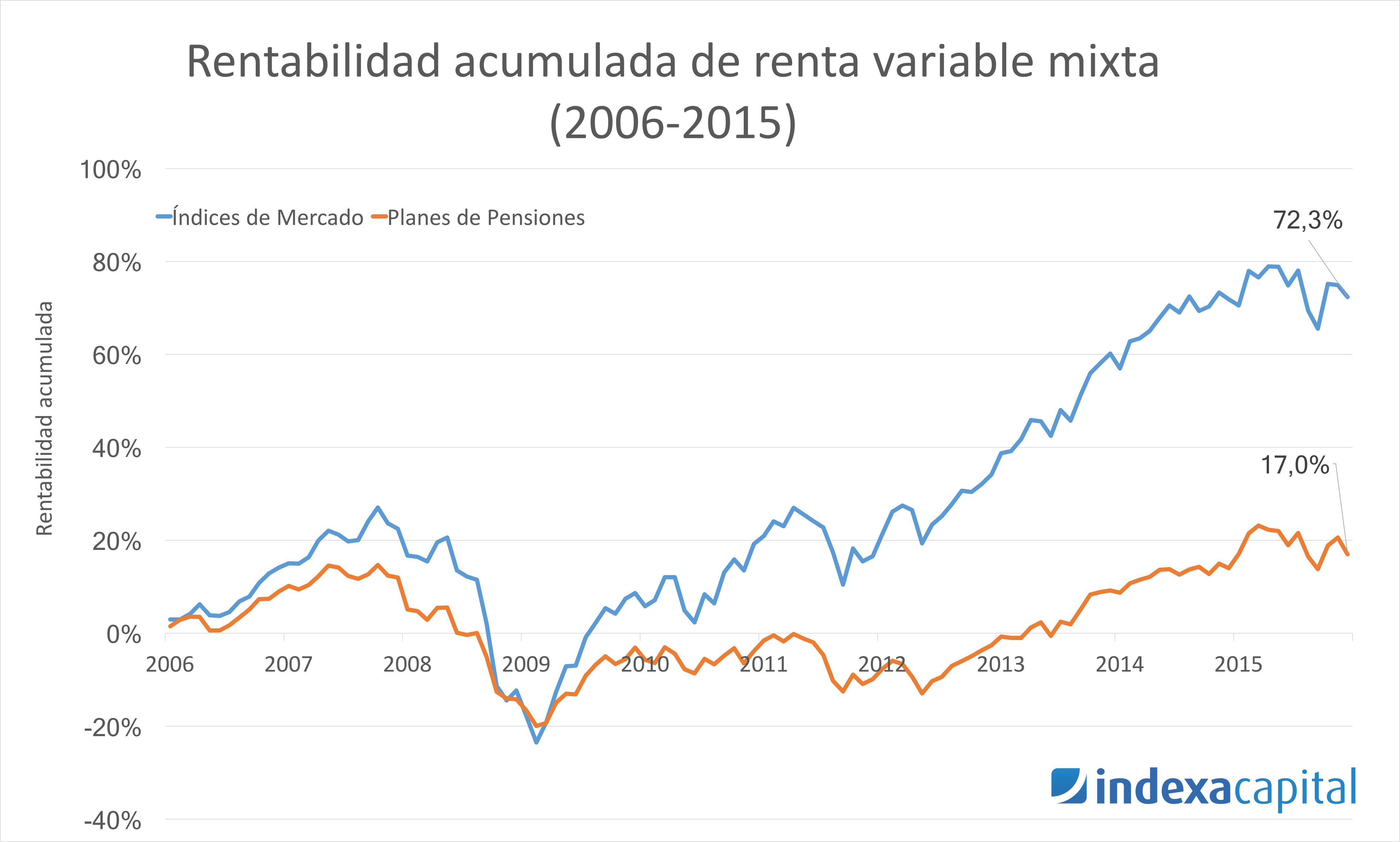 Tiempo de lectura: 4 minutos. 1er Estudio de “Rendimiento de los Fondos de Gestión Indexada y Activa en España (pdf)” Si hubieras invertido 100€ en 2005 en la media de los fondos españoles de la categoría Renta Variable Mixta Internacional (la categoría con la que se comparan las carteras 5 a 10 de Indexa), en…